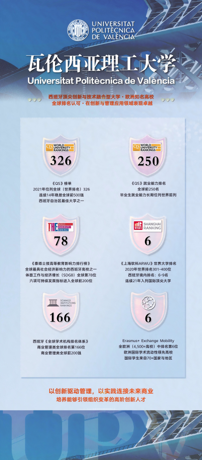 ★ 瓦伦西亚理工大学在2021年QS世界大学排名中,位列世界第326名: