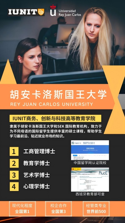1、胡安卡洛斯国王大学(Universidad Rey Juan Carlos)位于西班牙治安最好的城市马德里,是公立大学中最现代化的一所。大学创立于1996年,目的是通过理论学习结合在实验室和企业中的实习为学生提供全面培养,便于其快速融入就业市场。胡安卡洛斯国王大学,国际学生数量排名第一位,是外国留学生公认的西班牙最具魅力的大学,因为我们致力于提供高质量的教育,各个学科领域的专家教授共计超过2000名。来自113个国家的5000多名国际学生在胡安卡洛斯国王大学学习。