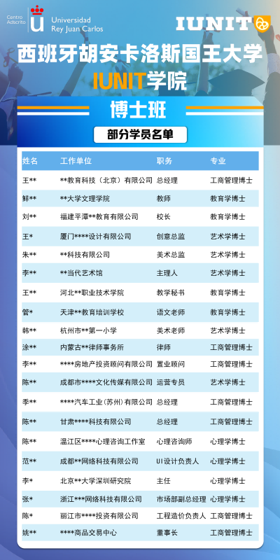 当下的职场竞争,早已不是单一能力的比拼,而是圈层资源、认知维度的综合较量。对真正有追求的在职精英而言,选择西班牙胡安卡洛斯国王大学IUNIT学院博士,本质上是选择了一个更高层次的成长平台,选择了一群能同行的优秀伙伴,选择了一种更具可能性的未来。