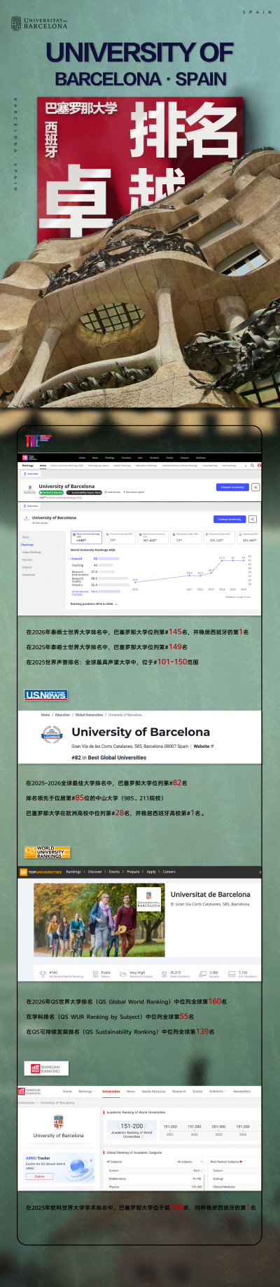 全西班牙第一!巴塞罗那大学问鼎四大全球权威排名